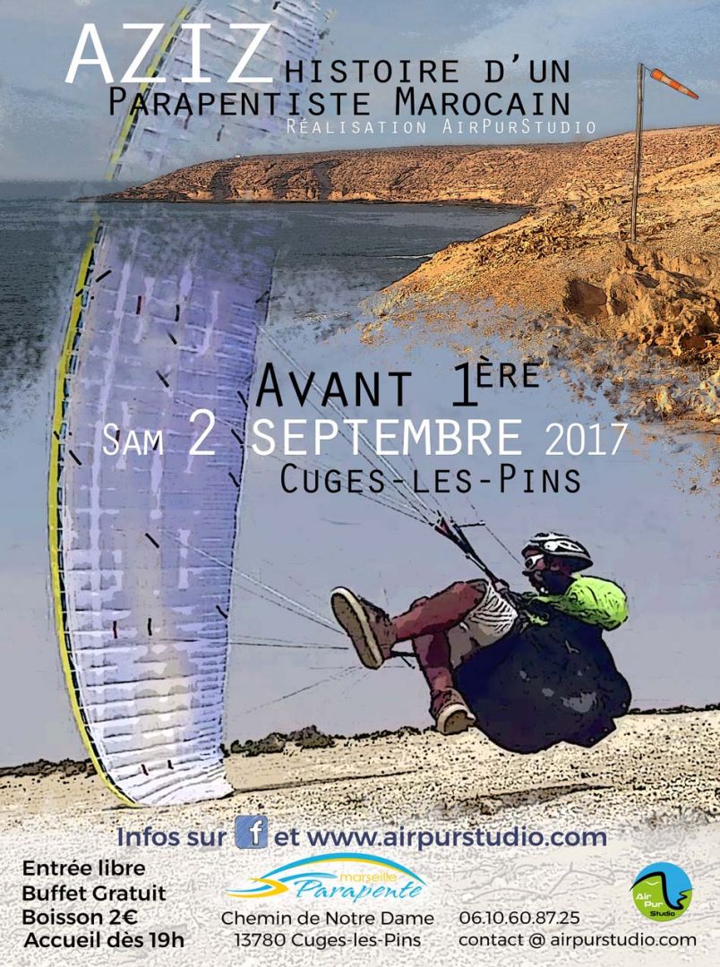 Nous vous invitons à venir nombreux samedi 2 septembre 2017, pour l'avant 1ère du reportage de 26 min sur Aziz Elmssaida, l'un des meilleurs parapentiste au monde.
