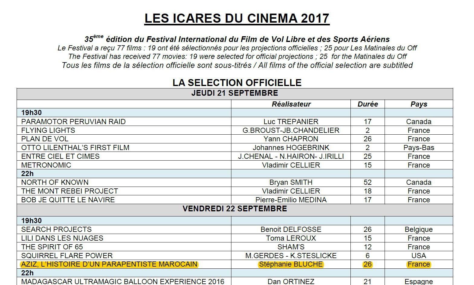 Voici la programmation du festival des Icares 2017. Air Pur Studio à l'honneur d'y présenter sa première réalisation.