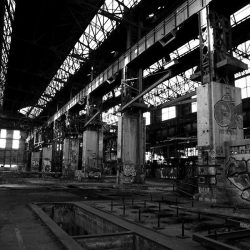 Les anciens chantiers navals de la Seyne sur Mer ont traversé des générations!! Aimant errer dans ces lieux abandonnés (ici les ateliers mécaniques) ou l'activité débordante d’antan à laissé place à un silence de cathédrale j'y ai laissé traîné mon objectif.