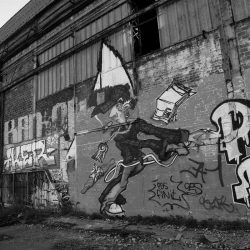 1. J’adore ! Pendant des années j’ai pris la navette maritime pour me rendre au lycée et chaque jour je me disais qu’il y avait de l’art sur ces murs des chantiers désaffectés. Mes préférés : « NON A TOUT » et un qui a disparu sous les couches : « JE SUIS MON CHIEN » ! Et un jour en rentrant sur le bateau, il y avait une élève à moi avec une copine. Et en discutant j’ai appris que le père de cette copine était artiste et était l’auteur de ces fresques sur les bâtiments abandonnés…