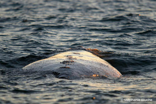 Les baleines sont impuissantes face aux goélands, elles se retrouvent avec d'énormes cratères tout le long du dos et la douleur est tellement insupportable qu'elle replonge parfois sans même avoir repris son souffle. Les principaux individus touché sont les mères et leur petit. Les attaques répétées étendent les plaies qui s'infectent.